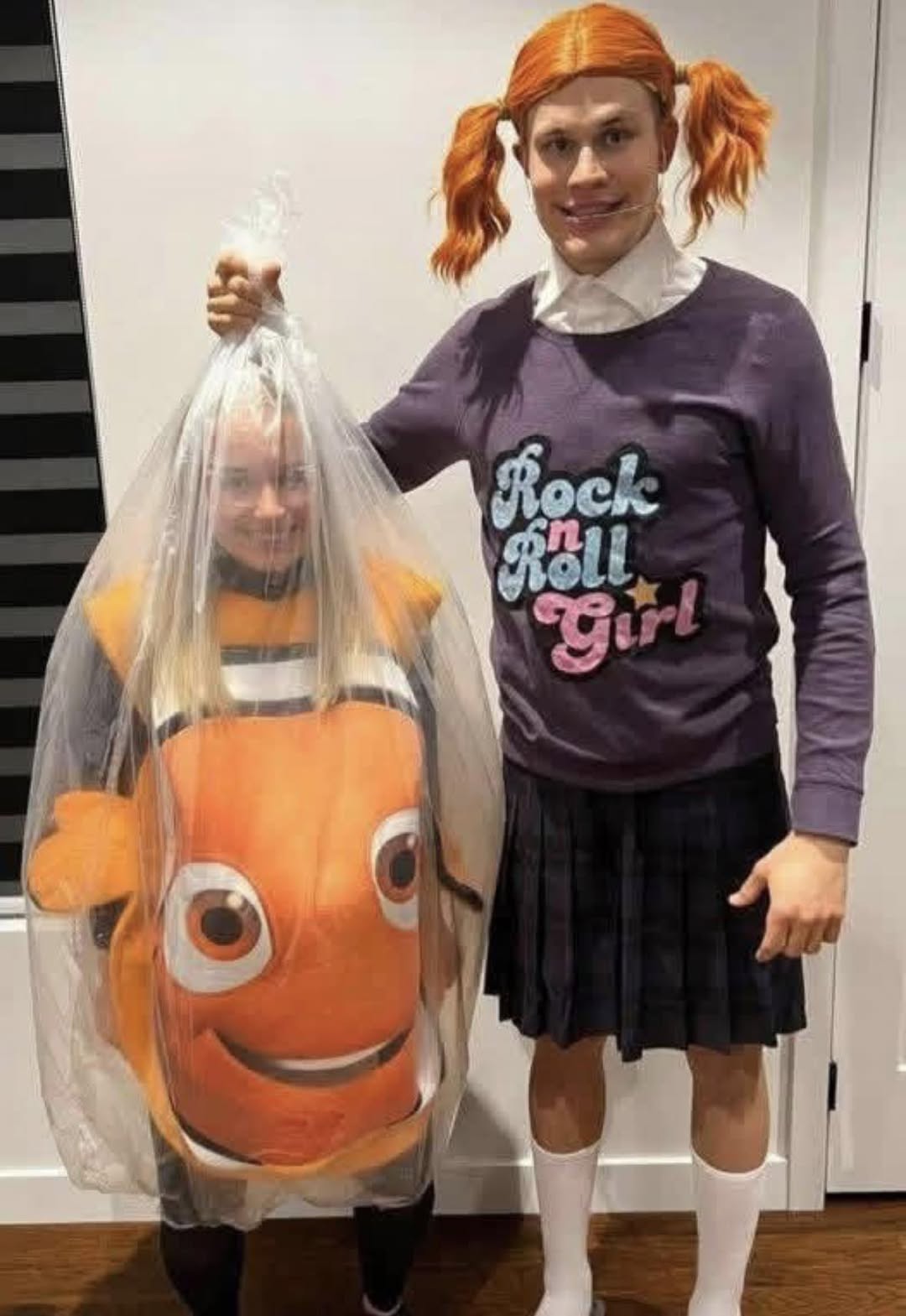 So, I took matters into my own hands. Two weeks before Halloween, I secretly ordered him a full *Rugrats* Angelica costume. The wig, the skirt, the socks—everything. For myself, I made a Nemo costume out of orange fabric, foam, and a clear poncho. When Halloween night came, I laid his outfit on the bed and said, “You’re wearing this, or I’m going alone.”