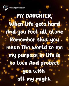 My Daughter π When life gets hard & you feel alone, remember β you mean the world to me π My purpose is to love & protect you with all my heart ππ©βπ§