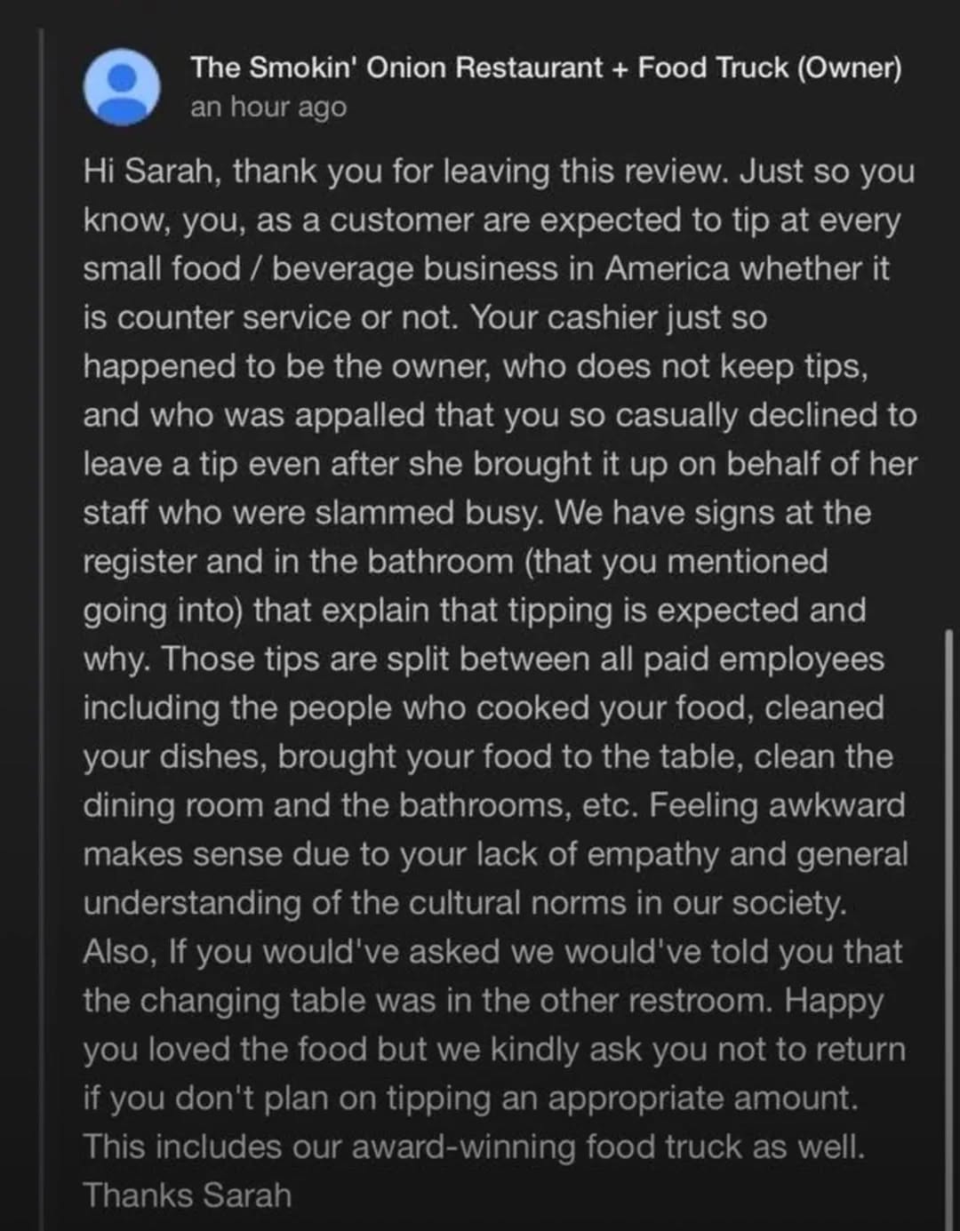 Local Restaurant Publicly Tip Shamed Customer, Our Community Isnβt Having it.
