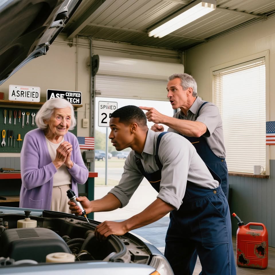 The morning sounded like every other at Redline—air compressor humming, wrenches chiming, oil hanging sweet-sour in the bay. Malik was there early anyway, a promise in his head that no one left stranded if he could help it. The woman at the fender had tremor-hands and a voice careful with money.