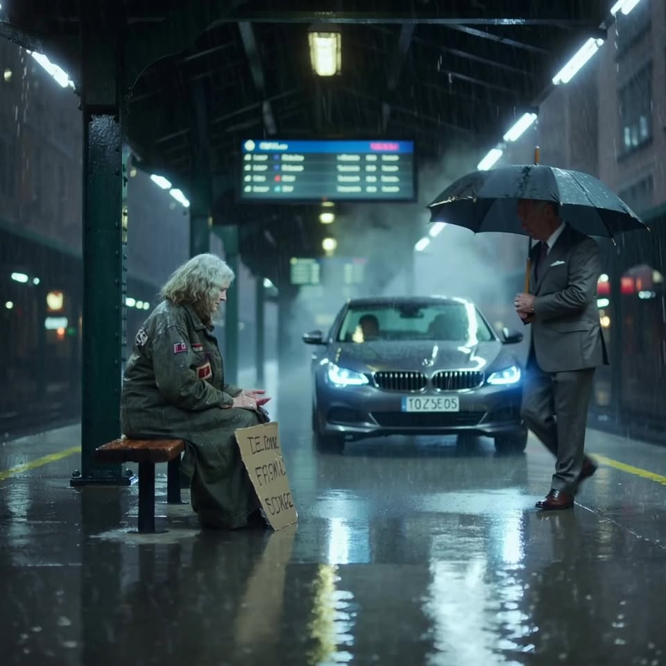 For a long moment, they just sat there — two worlds colliding under the same broken awning. He offered her his jacket. She refused. Pride still lived where comfort had died. So he asked a different question: