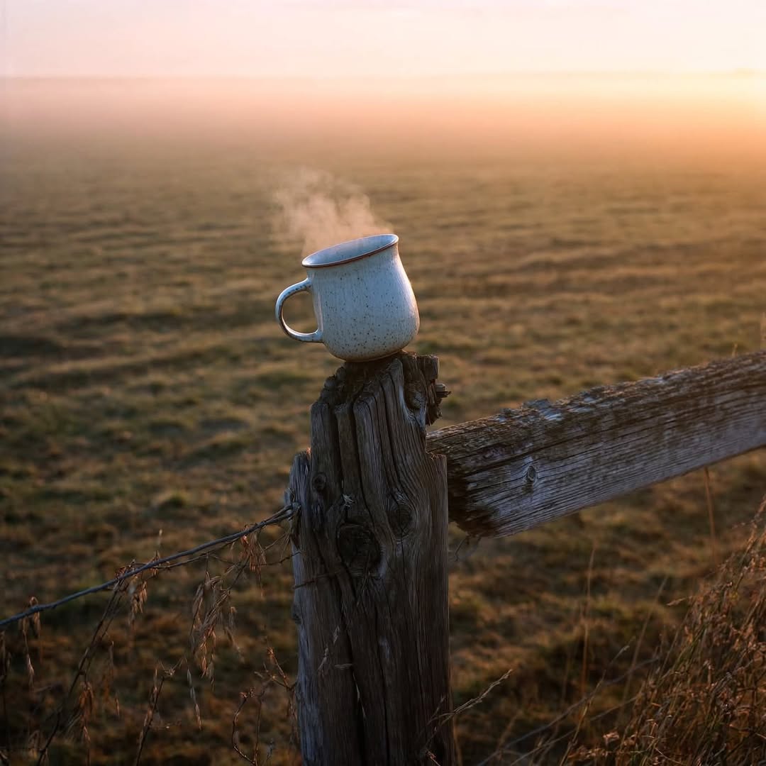 I filled the mug, the steam rising in the cool air. I didn’t approach her. I just walked to the fence post—the fence post—and I placed it there.