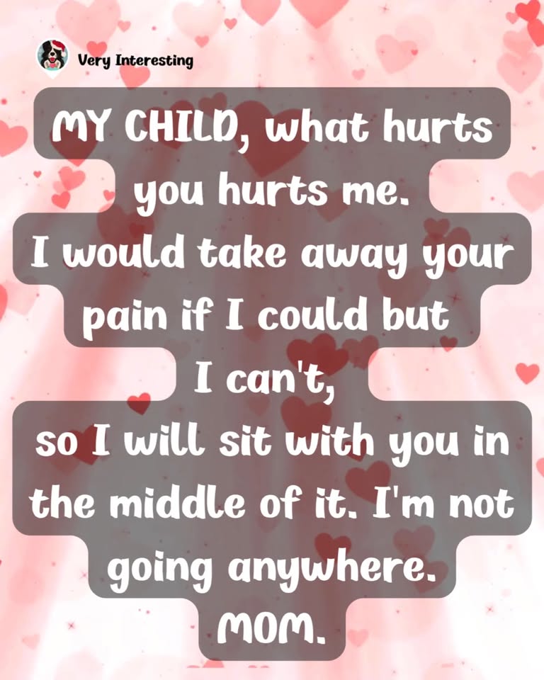 My child 💖 what hurts you, hurts me too 💔 If I could take your pain away, I would 🌷 But I’ll sit with you through it all — I’m not going anywhere 🤱❤️ Love, Mom 💫