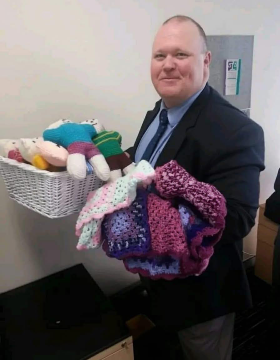 The photo is me dropping off some more bears and quilts. Mum’s my hero and, since she’s not on Facebook, if you message me I’ll pass it on.