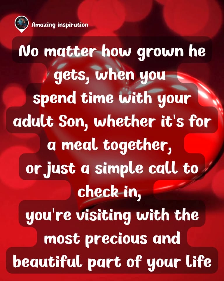 No matter how grown he gets 💙 spending time with your son — a meal 🍽️ a call 📞 or just a hug 🤗 — means visiting the most precious & beautiful part of your life 🌟