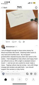 Now we should stay home if we don’t tip housekeeping … get the f$&k out of here !!!