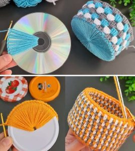 Awesome workβ€οΈβ€οΈ l also would like the patternπ₯°π Learn more: https://www.crochetpatterns9.com/crochet-basket-made-using-a-cd-as-a-base/