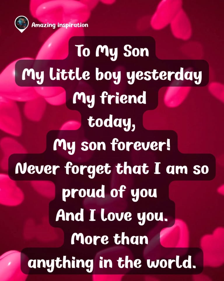 To My Son π My little boy yesterday π¦ My friend today π€ My son forever π« Never forget how proud I am of you π I love you more than anything in the world β€οΈ