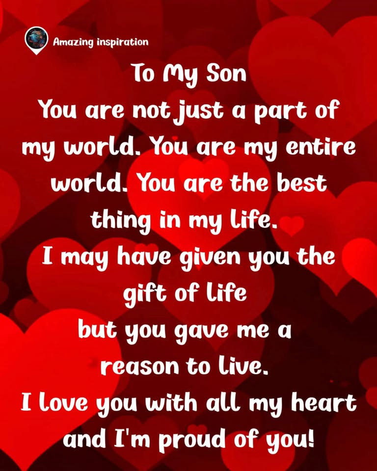 To My Son ๐ Youโre not just a part of my world โ you are my whole world ๐๐ซ I may have given you life, but you gave me a reason to live โค๏ธ I love you so much & Iโm so proud of you! ๐๐